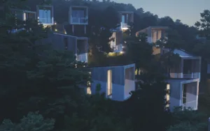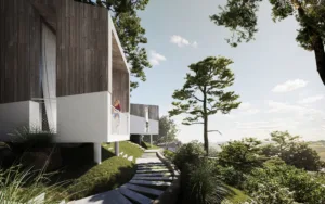 OB580 OB580 is located in the Mountain Region of Spilia in the Adefoi Forest and consists of 15+ Forest Cabins. Type 1 is a Single Level 25sq.m Cabin & Type 2 is a Double Level 40sq.m Cabin. Client: AI Architects Architect :